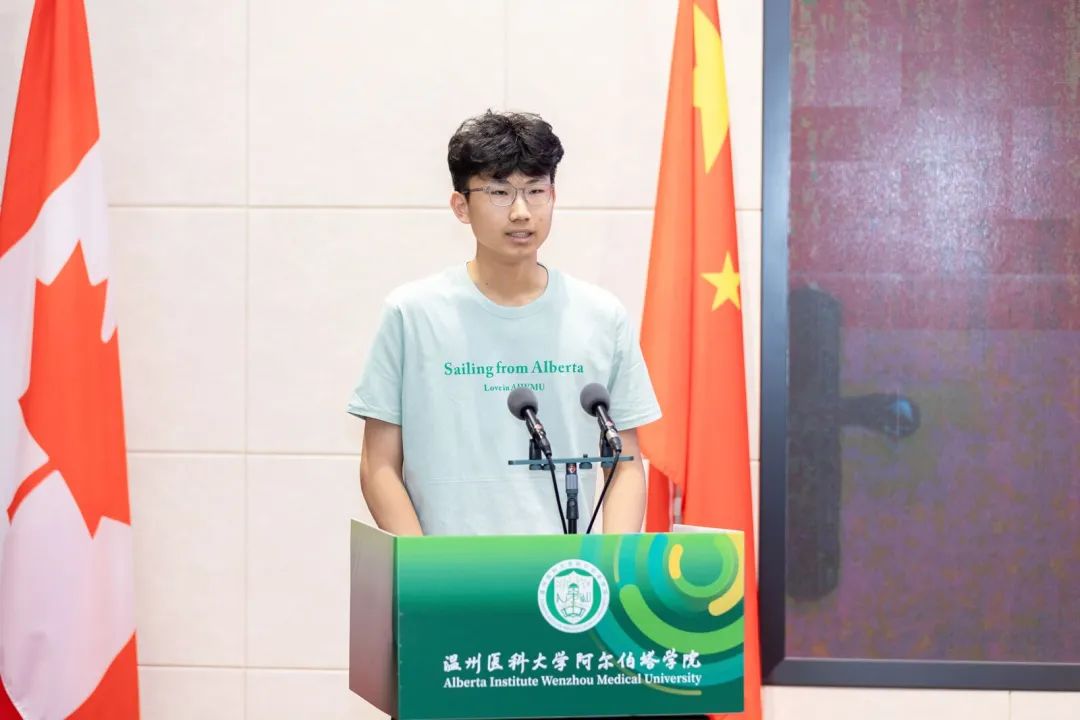 朱雪波副校长在致辞中表达了对中加全体教师团队的感谢,并以阿院“三景”:“合和”之景、“温馨”之景、“青春”之景,寄语新生在学院求学旅程中不断收获知识,成长为具有国际视野、创新精神和实践能力的新时代医学中坚力量。