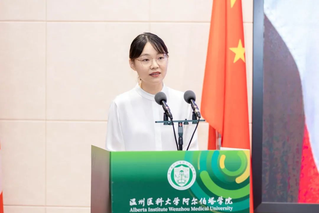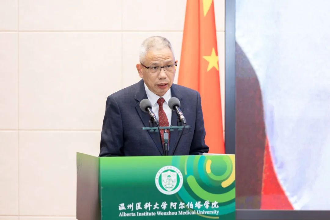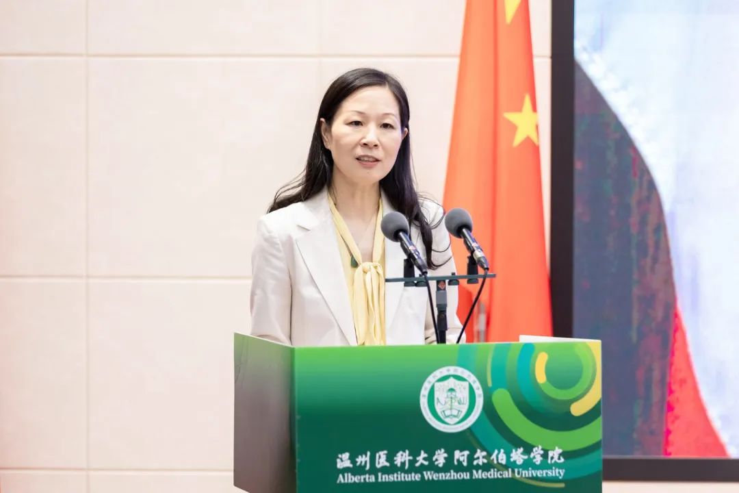 Brenda Hemmelgarn院士在致辞中高度赞扬了该项目自开办以来取得的显著成绩,向为联合学院建设发展的中加双方师生所付出的努力表示感谢。她强调,温医大成人短视频 是中加两校先进理念与优质资源充分融合的结晶,阿尔伯塔大学将继续在课程改革及教学理念上给予学院支持,为全体学生提供高水平的培养。她勉励2024级新生要充分利用好国际化的教育平台,努力学习掌握医学前沿知识,并祝福同学们未来在医学领域追求卓越、茁壮成长。