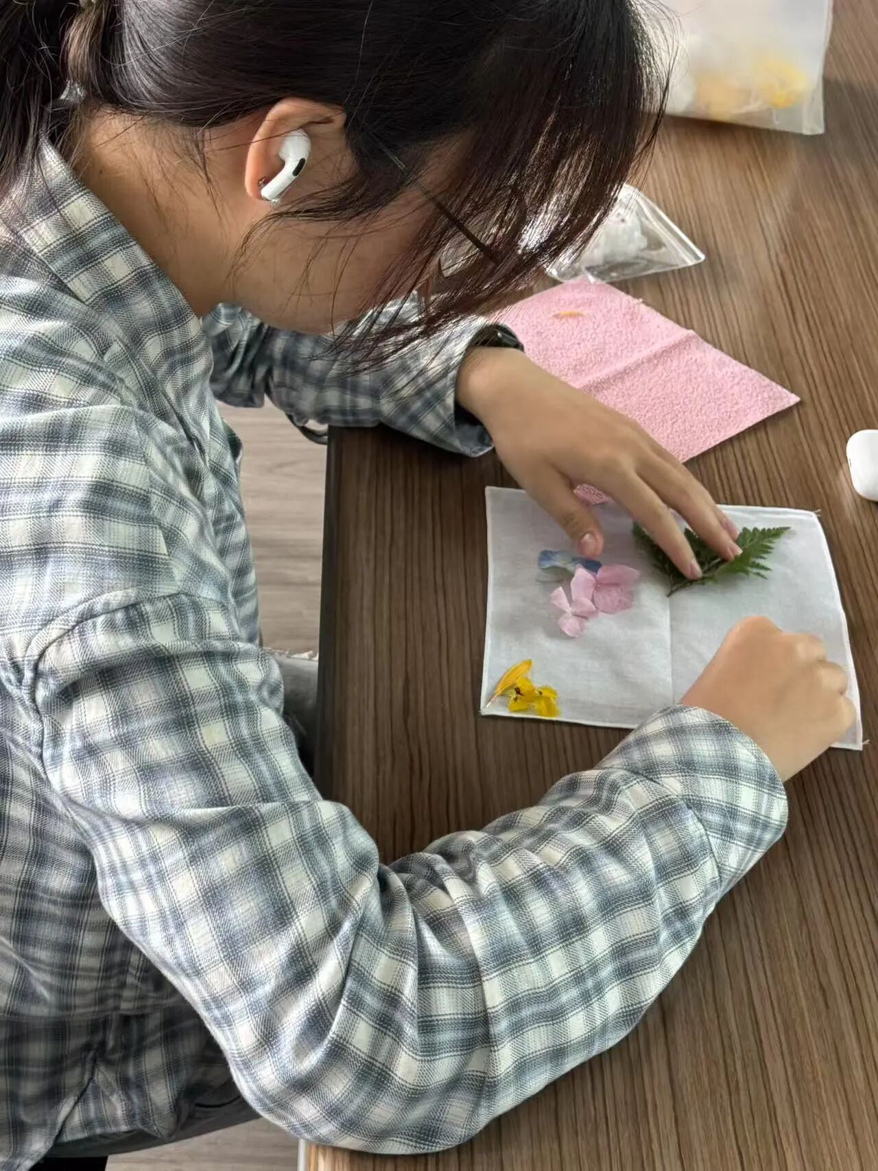 自然为师:现场提供数十种新鲜花叶,桉树叶的清新纹路、蕨类的羽状脉络,都是你的天然画笔。