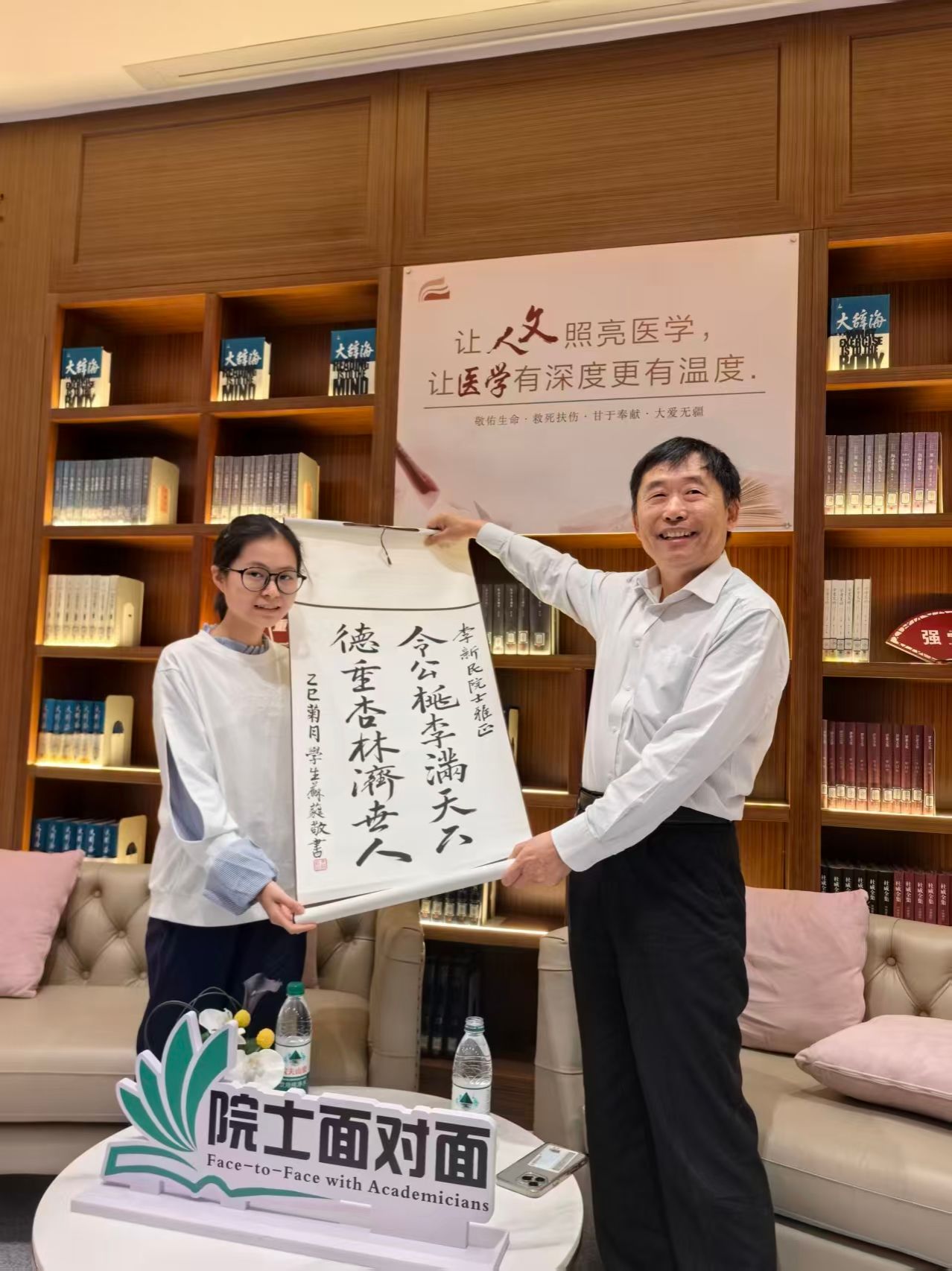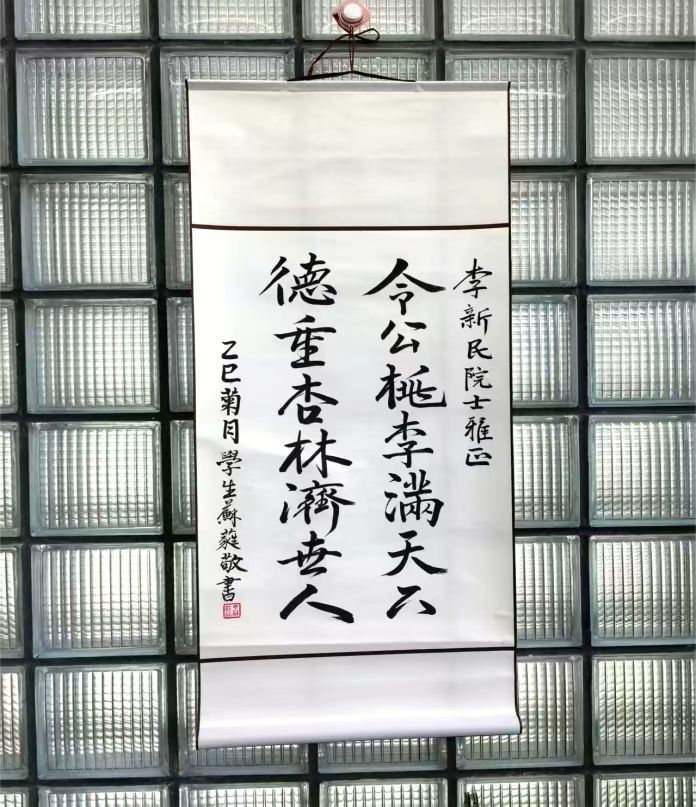 活动尾声,2025级新生车苏蕤同学将亲笔书写的书法作品赠予李院士,以表敬意与感激,现场掌声经久,温馨感人。