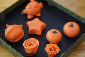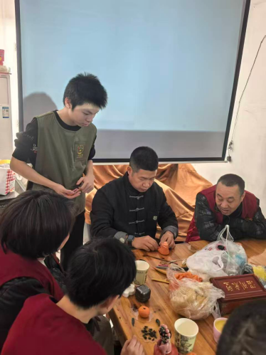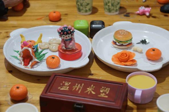 随后,活动迎来了充满艺术气息的环节——温州米塑非遗体验。我们特别邀请了温州米塑非遗传承人董希造老师现场教学。在董老师的悉心指导下,大家用巧手捏制出一颗颗栩栩如生的橘子、花朵等米塑作品。