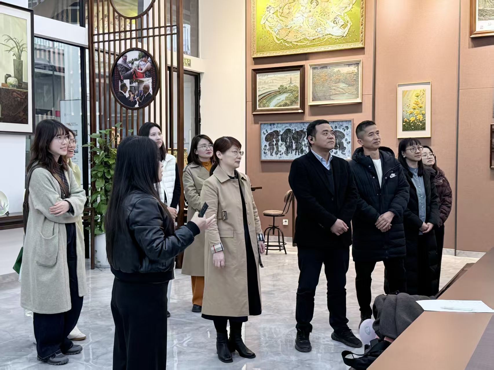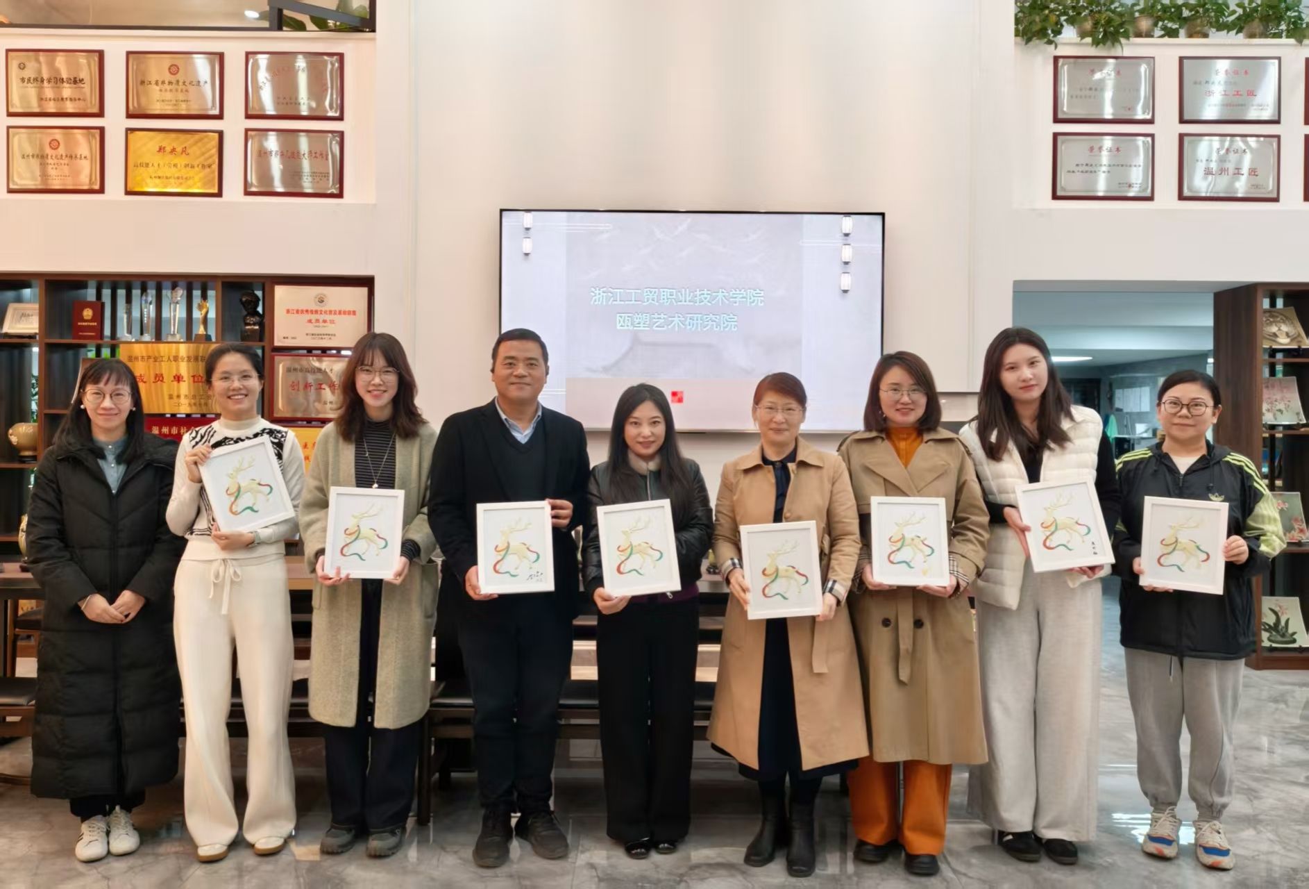 瓯塑作为温州独特的传统工艺美术、国家级非物质文化遗产之一,色彩丰富,质地坚韧,寓意深远。在研究院里,正高级工艺美术大师郑央凡老师首先向大家阐释了瓯塑“以塑代画”的艺术特色及其在装饰、文创等领域的创新应用,大家跟随老师近距离观赏精美瓯塑作品,深入解读其承载的文化底蕴与艺术价值。