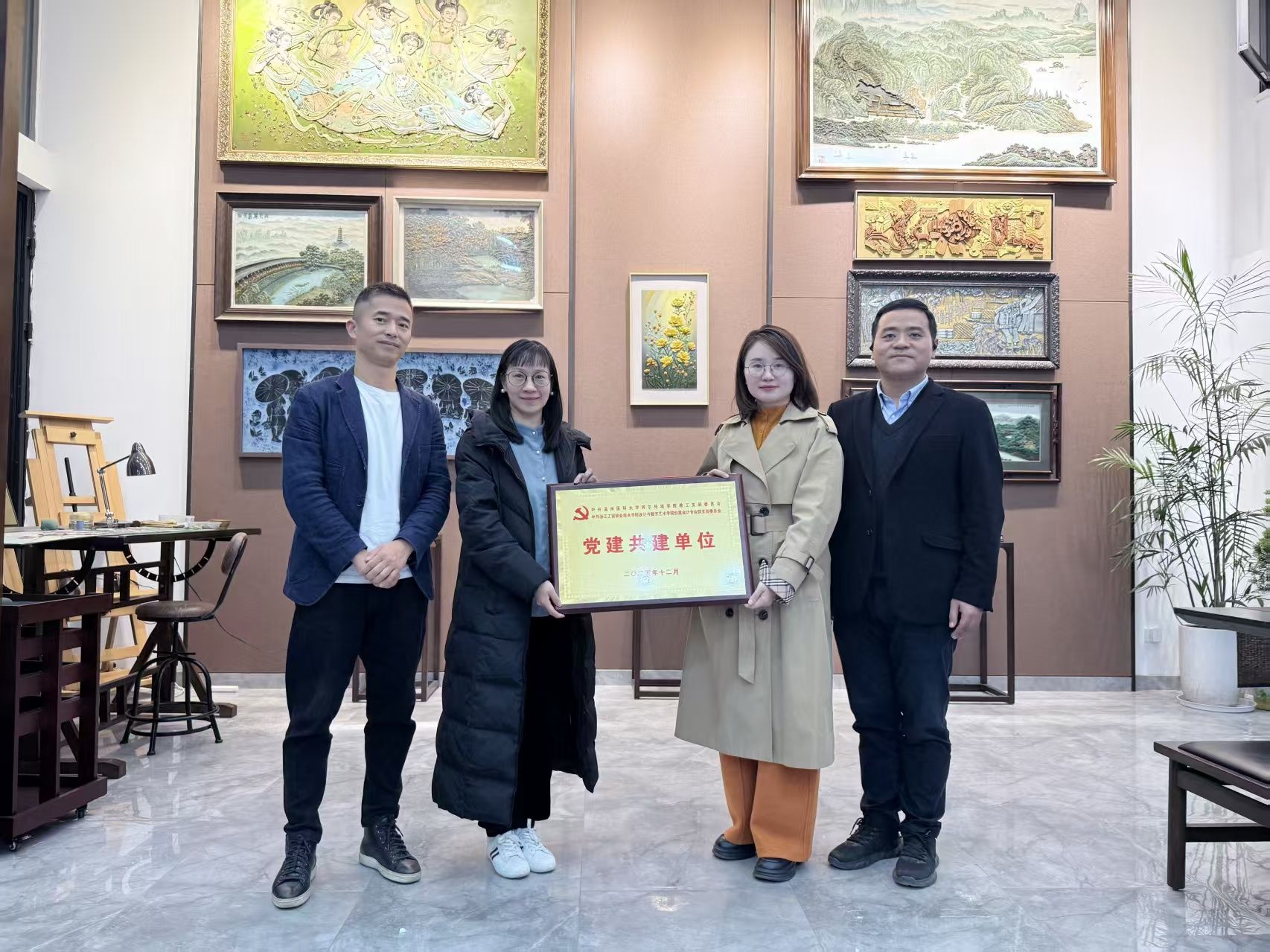 活动最后,在学院党委副书记王小尚与浙工贸设计与数字艺术学院党总支副书记许衍军的见证下,学院教工党支部与浙工贸创意设计专业群党支部党建联建授牌仪式,以凝聚发展共识创新党建工作载体,共同构建“资源共享、优势互补、互相促进”的党建工作新格局。