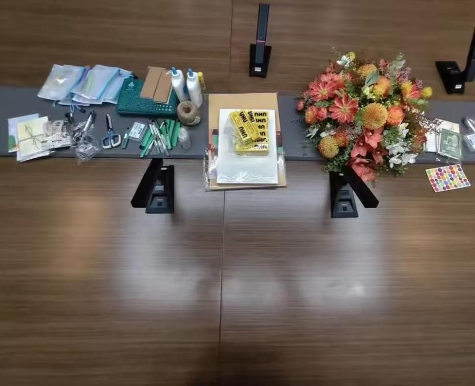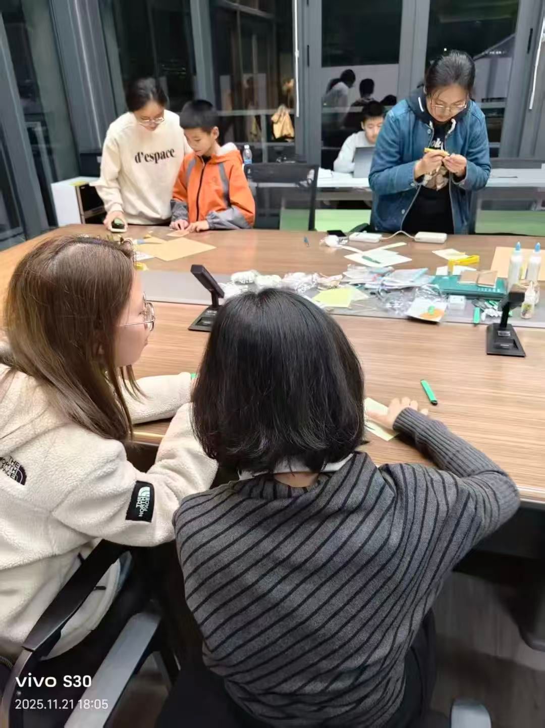随后的手工环节中,大家围坐一起,用扭扭棒制作各式创意作品。现场笑声不断,氛围活跃,同学们在动手中放松心情,也拉近了与学院领导之间的距离。
