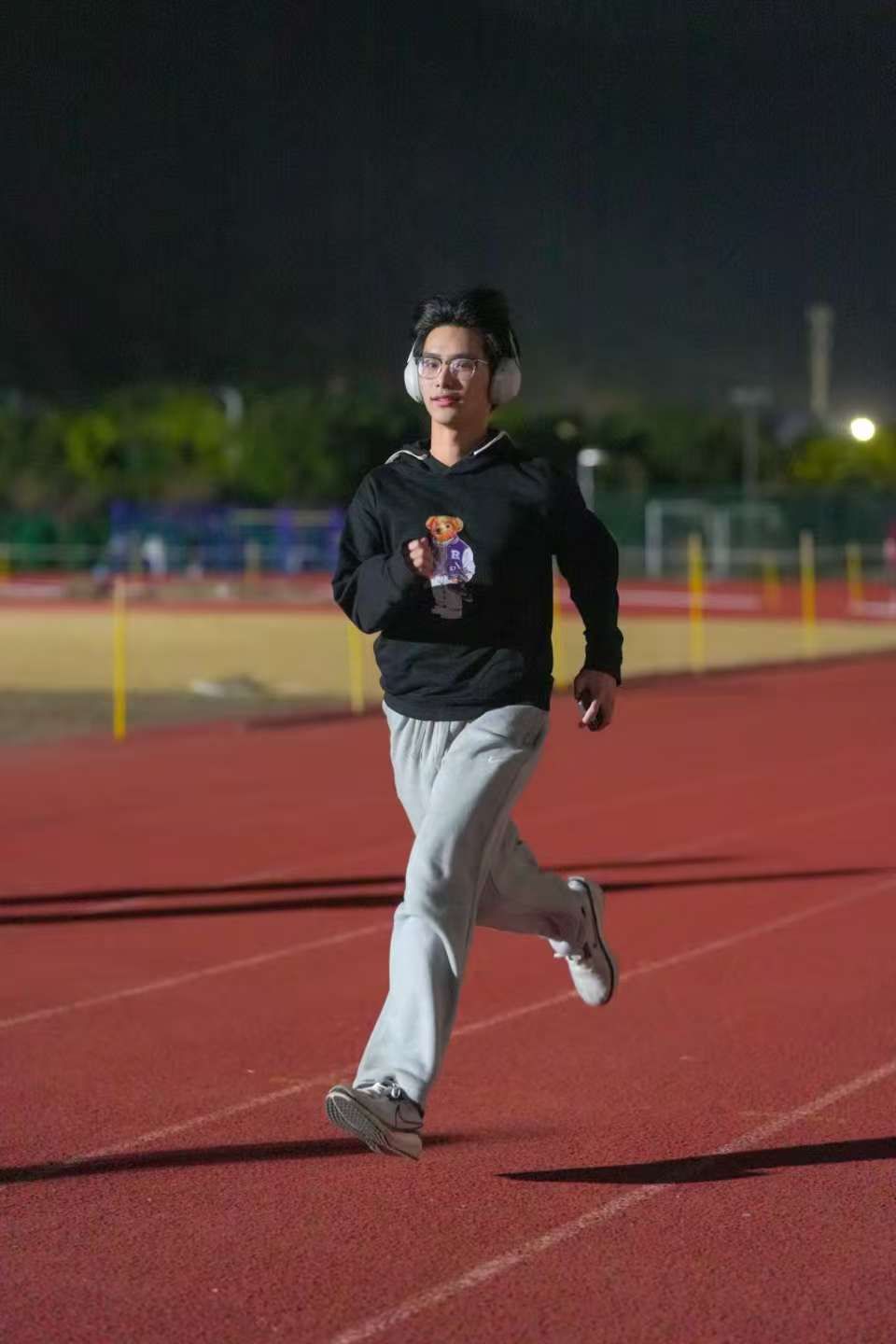 本次荧光夜跑别出心裁地设置了“拼出IELTS图样+完成2公里跑”的双重任务。活动现场,同学们手着荧光手环,或结伴而行,或全力冲刺,沿着规划路线奔跑,用脚步在校园地图上绘出清晰的IELTS字母轨迹。夜色中,闪烁的荧光与奔跑的身影相映成趣,成为校园里一道靓丽的风景线。