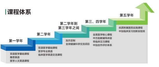 提升英文,拓展交流能力。探索医学与语言之间的衔接之路,为学生打造第一学年至第四学年由“日常交际-学术交流-专业应用”的梯度式目标构成的全周期英语培养体系。
